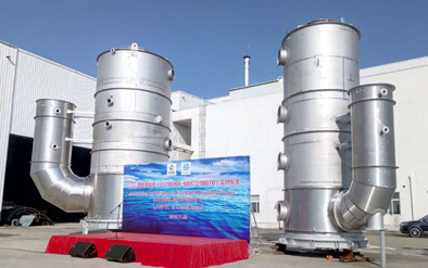 ????船用煙氣脫硫塔主要是通過降溫后的船舶煙氣和堿液接觸,來充分吸收重油燃燒后煙氣中攜帶的含硫物質(zhì),然后排放;煙氣進口處設有海水降溫噴淋裝置,塔體下部設有填料層增加氣液接觸面積,塔體上部設有除霧器可以在煙氣排放前除去其中的液體。脫硫后煙氣中硫含量≤0.1%。