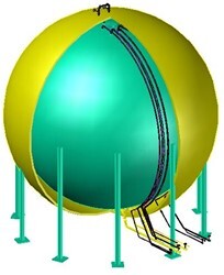 內(nèi)罐采用球形儲罐承載壓力,選擇不銹鋼承受介質(zhì)低溫和壓力,同時設(shè)置有冷縮吸收裝置;