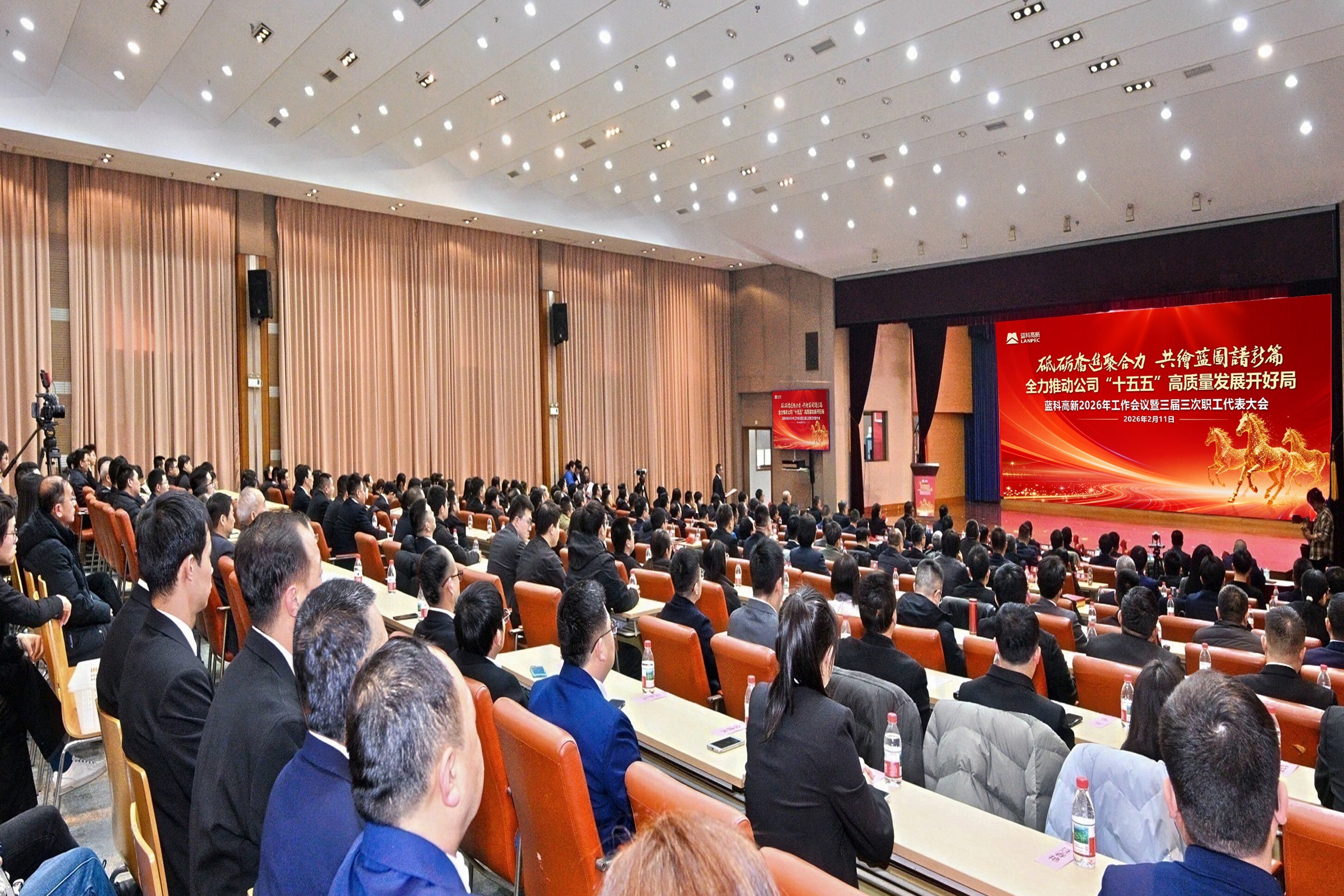 2月11日,藍科高新于上海、蘭州兩地同步召開2026年工作會暨三屆三次職工代表大會。會議以習近平新時代中國特色社會主義思想為指導,全面貫徹黨的二十屆四中全會和中央經濟工作會議精神,深入貫徹習近平總書記對中央企業工作的重要指示精神,嚴格落實國務院國資委和國機集團2026年度工作部署,回顧總結2025年及“十四五”時期工作成效,分析研判當前形勢與任務挑戰,系統謀劃部署2026年重點工作,為“十五五”時期發展開好局、起好步奠定堅實基礎。藍科高新助理級以上領導、部分董事、全體干部職工線上線下參會。中國空分工程有限公司、機械工業上海藍亞石化設備檢測所有限公司相關負責人受邀參會,藍科高新黨委委員、副總經理張尚文主持會議。